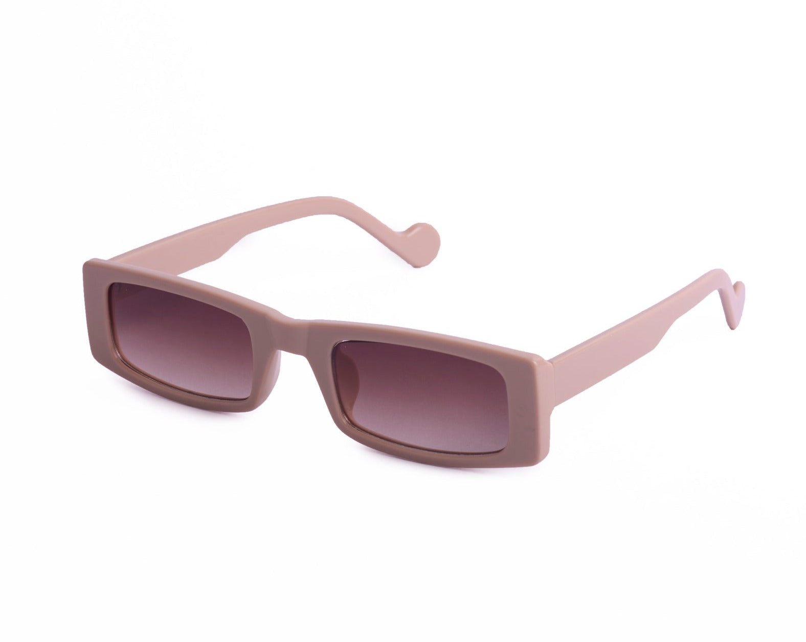 Sunglasses with frames and sidepieces in plastic and tinted, UV-protective lenses.