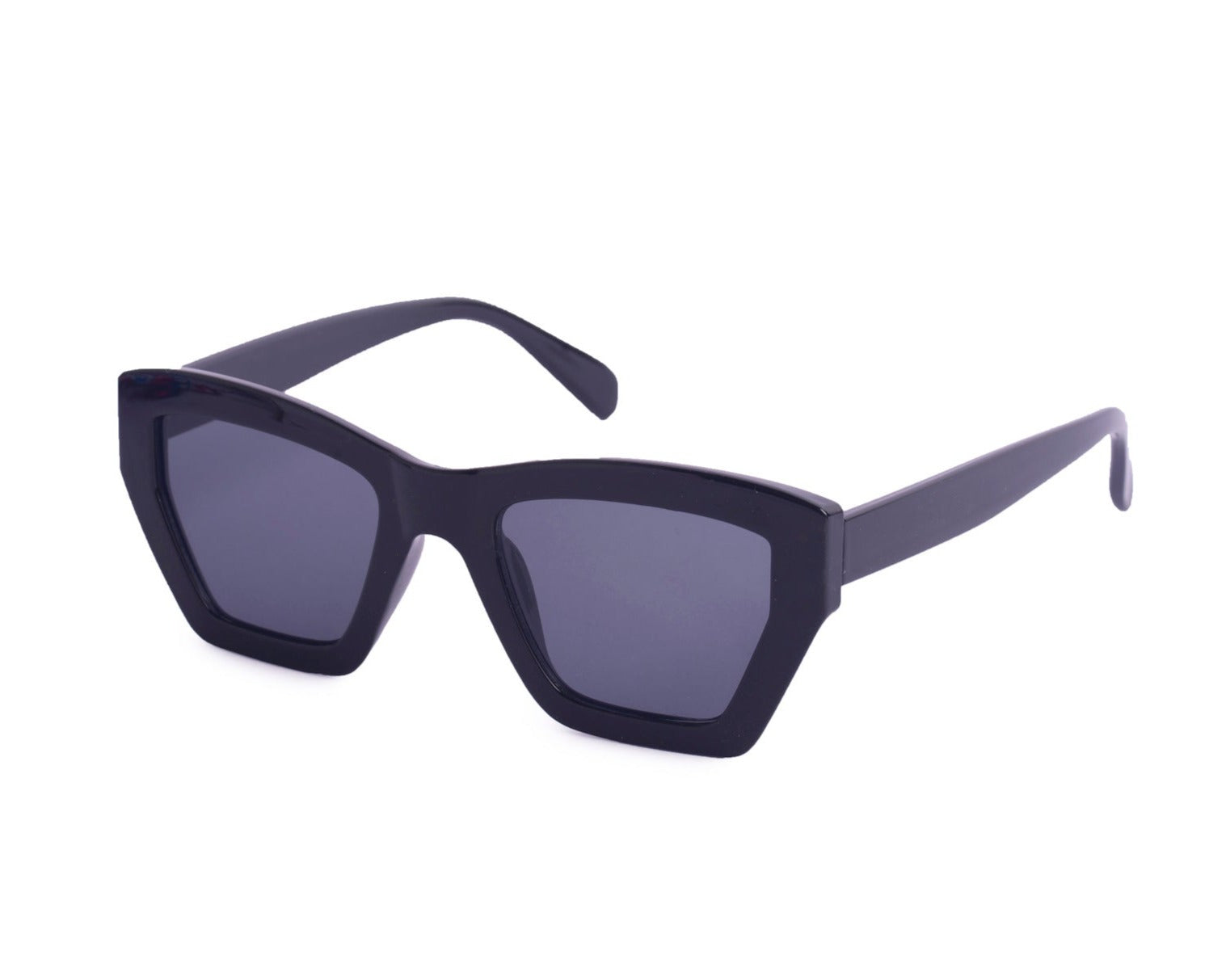 Sunglasses with frames and sidepieces in plastic and tinted, UV-protective lenses.