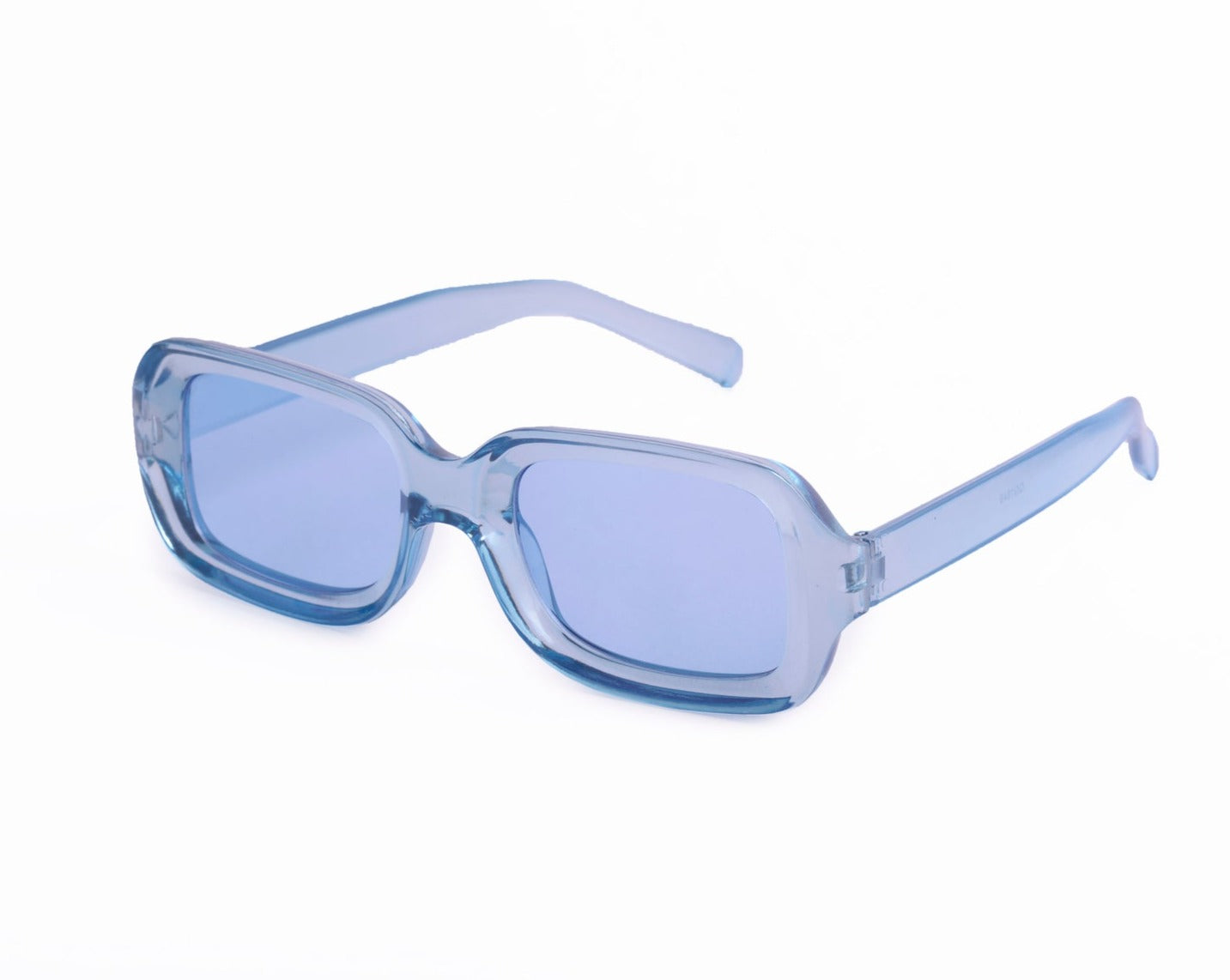 Sunglasses with frames and sidepieces in plastic and tinted, UV-protective lenses.
