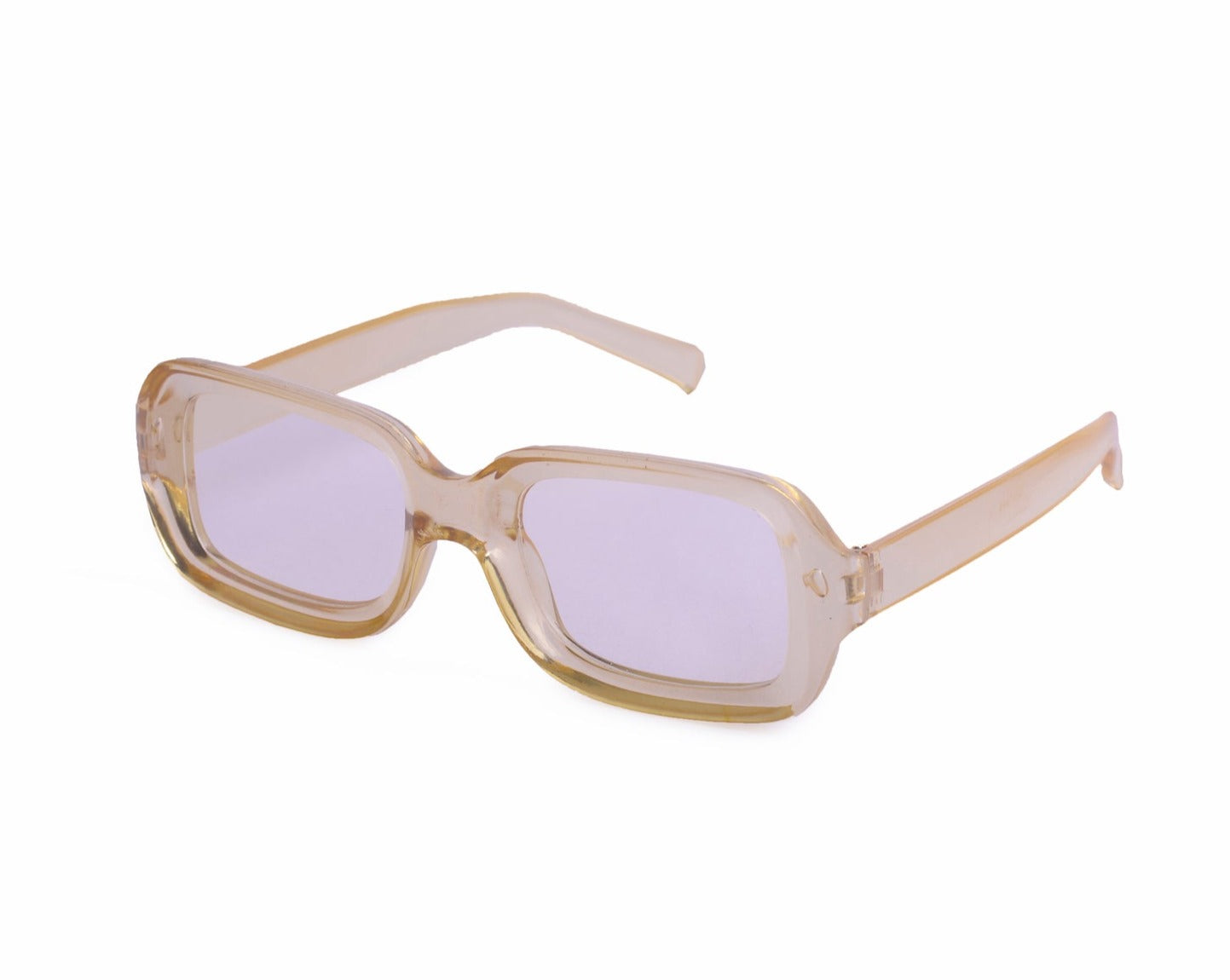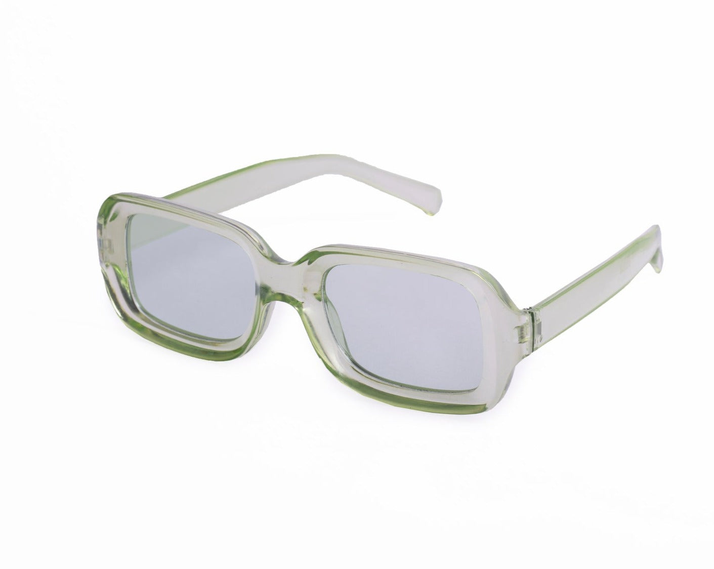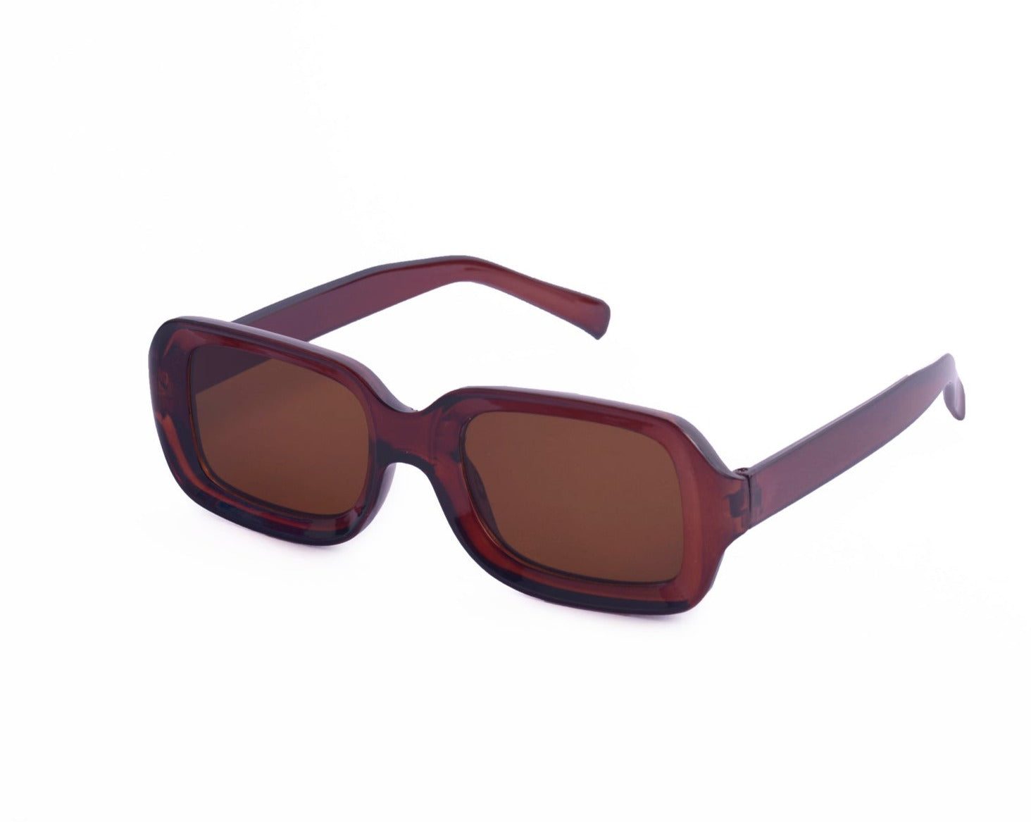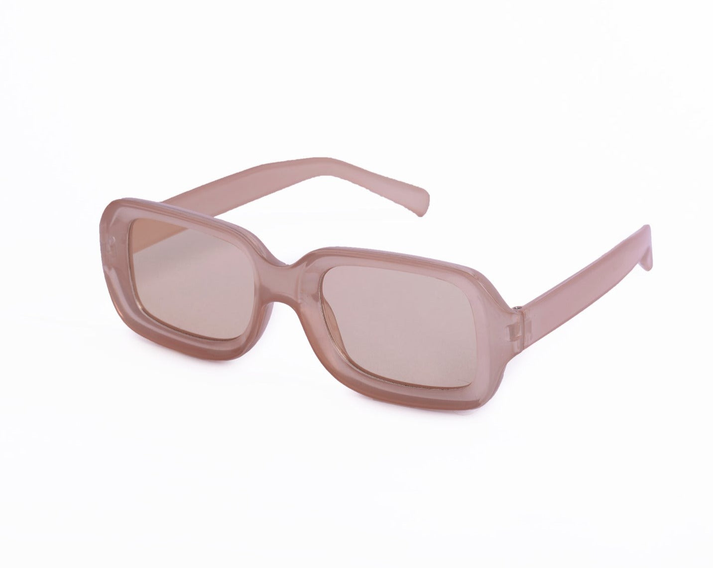 Sunglasses with frames and sidepieces in plastic and tinted, UV-protective lenses.