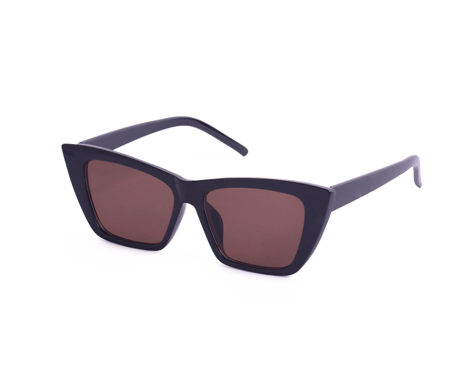 Sunglasses with frames and sidepieces in plastic and tinted, UV-protective lenses.