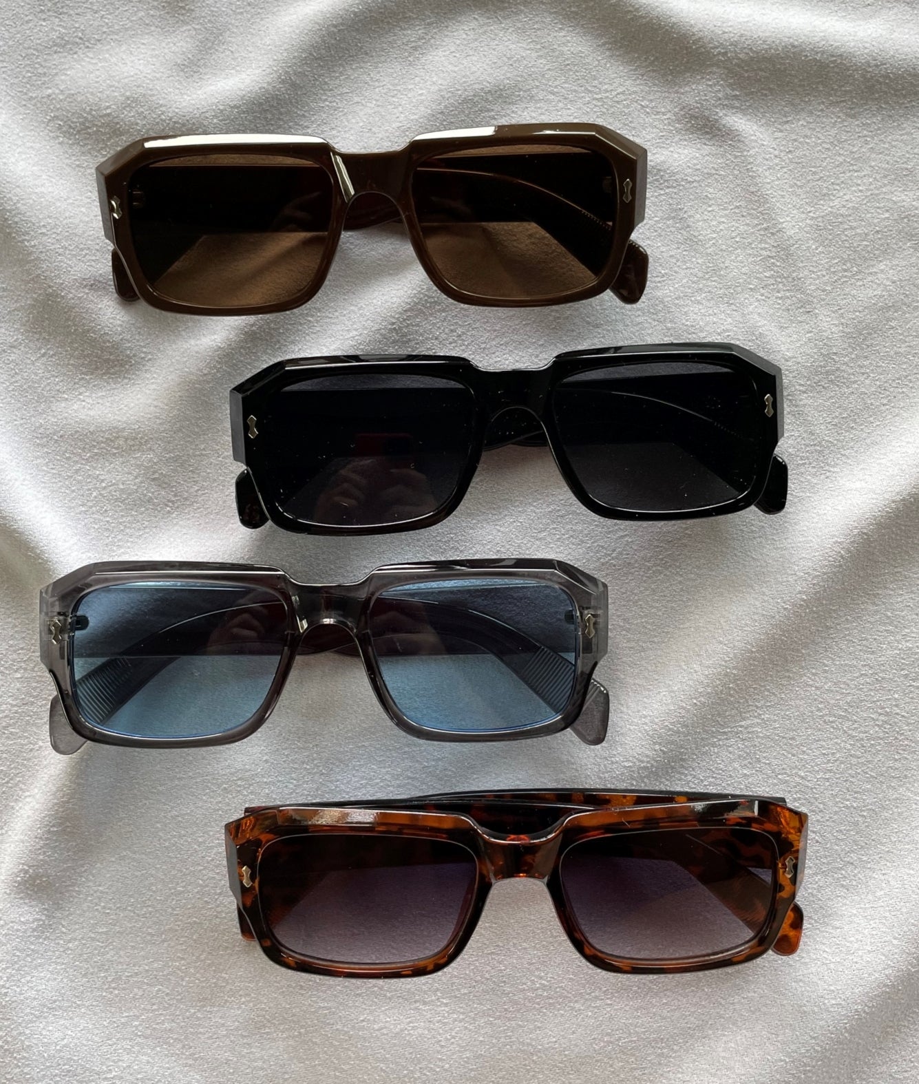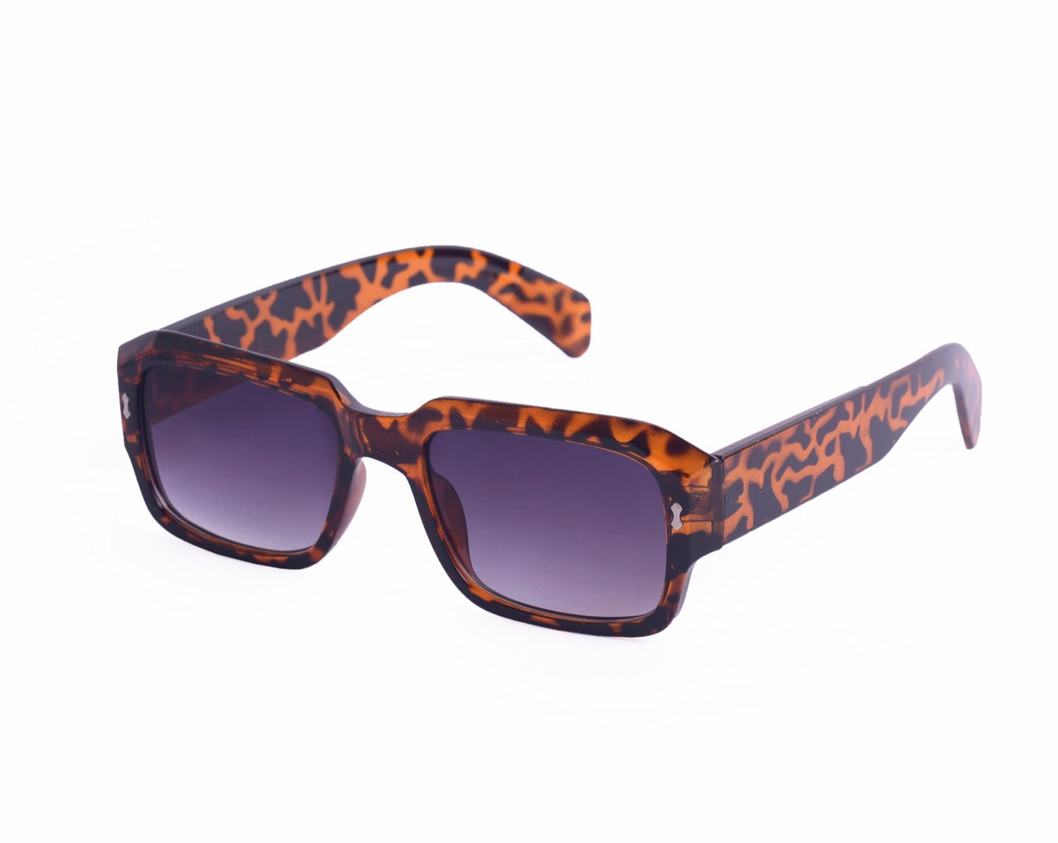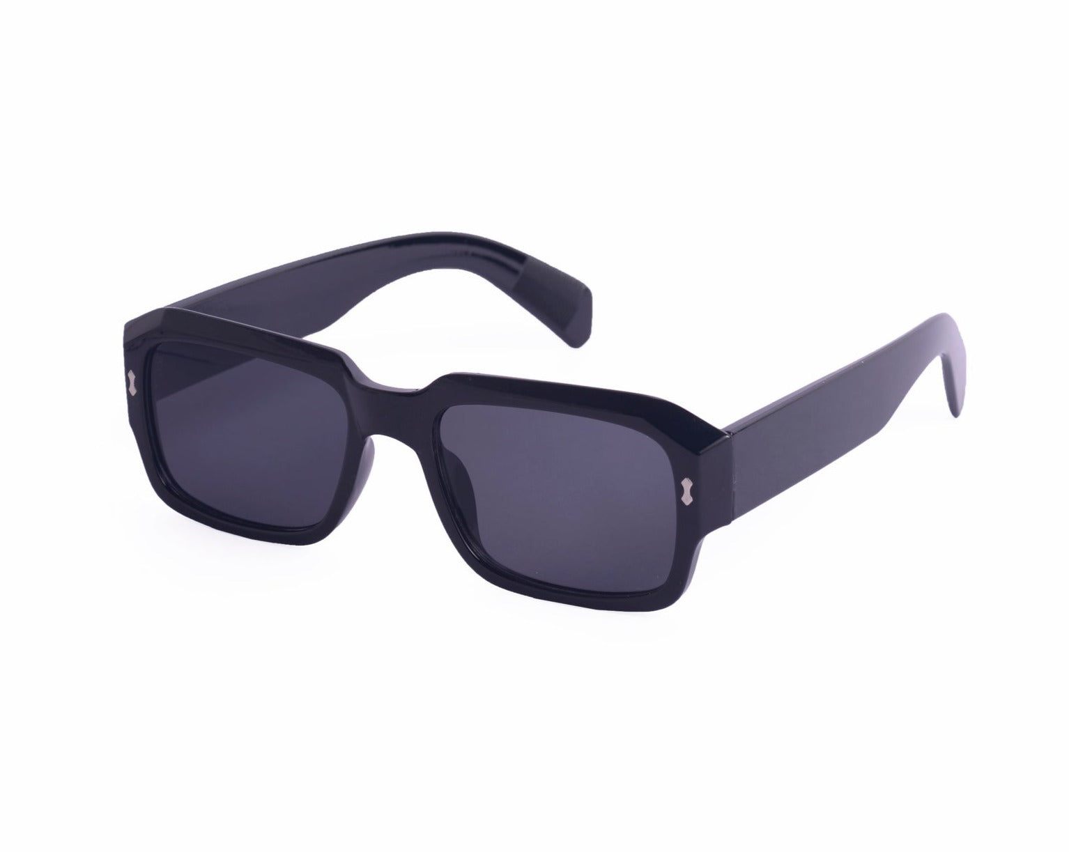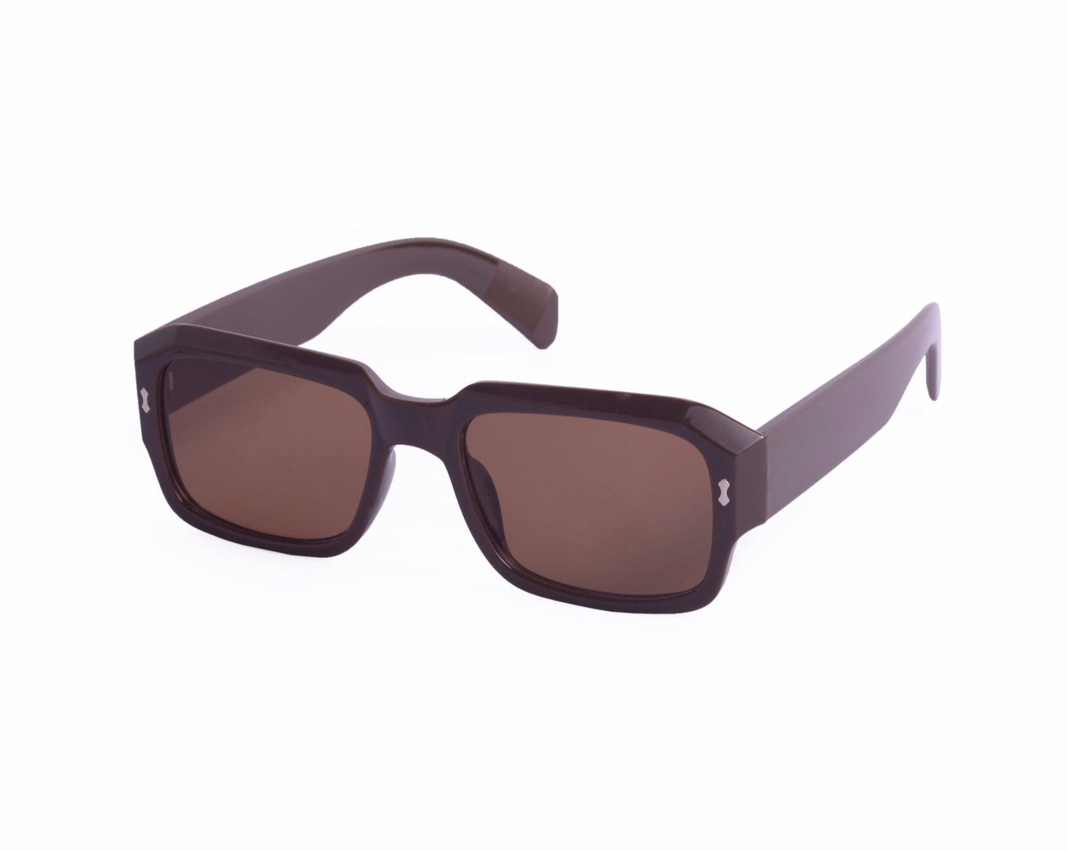 Sunglasses with frames and sidepieces in plastic and tinted, UV-protective lenses.