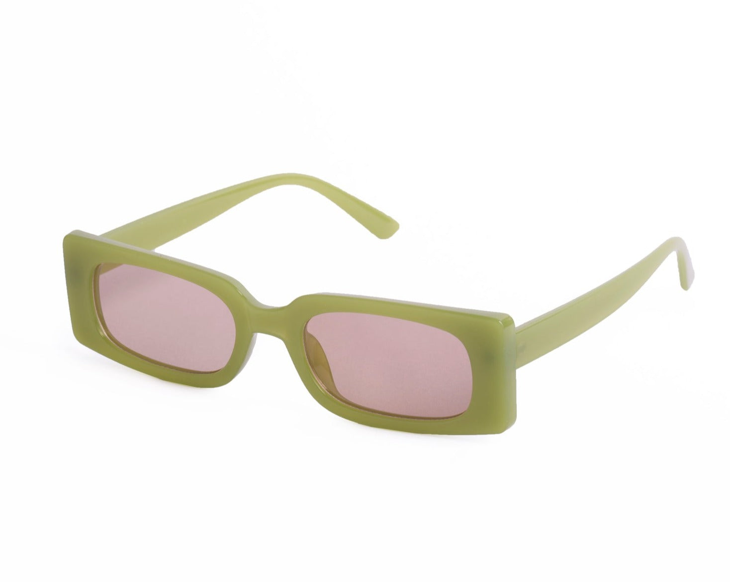 Sunglasses with frames and sidepieces in plastic and tinted, UV-protective lenses.