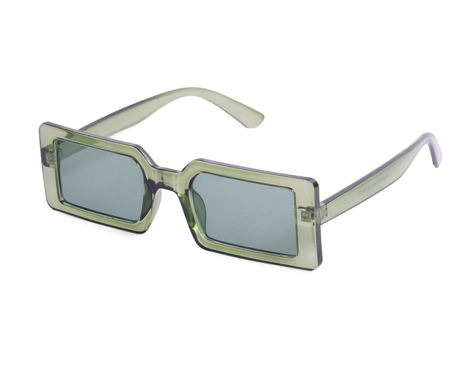 Sunglasses with frames and sidepieces in plastic and tinted, UV-protective lenses.