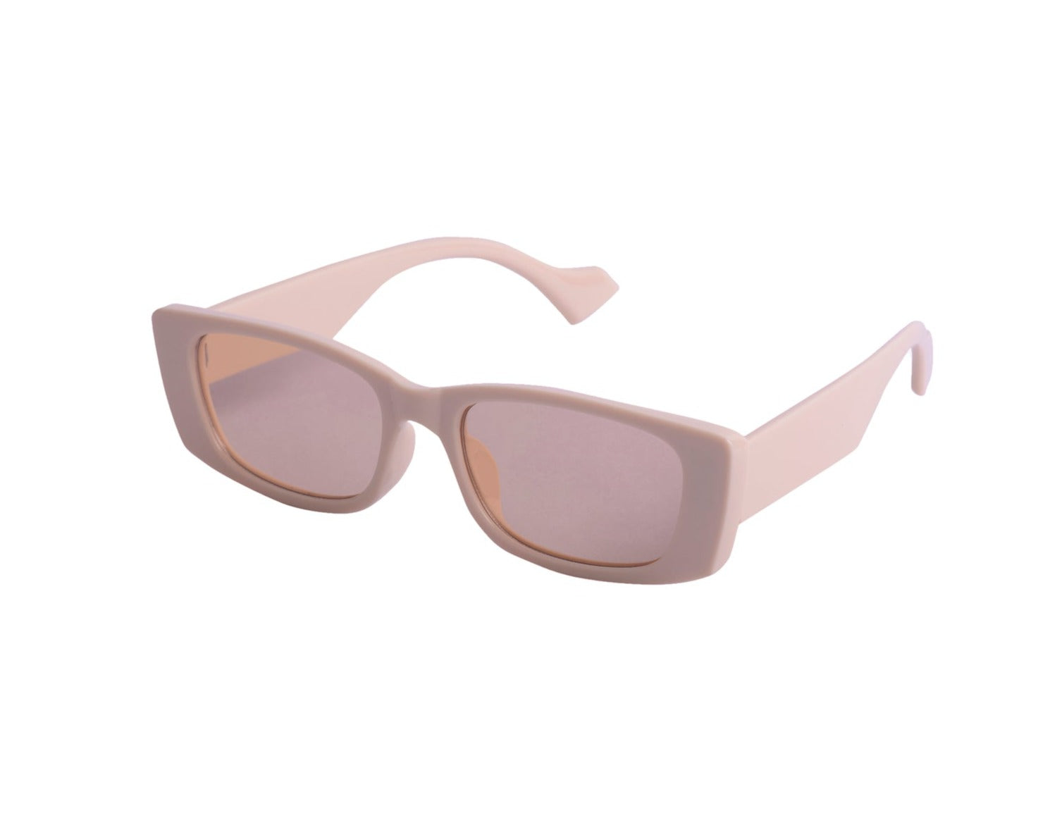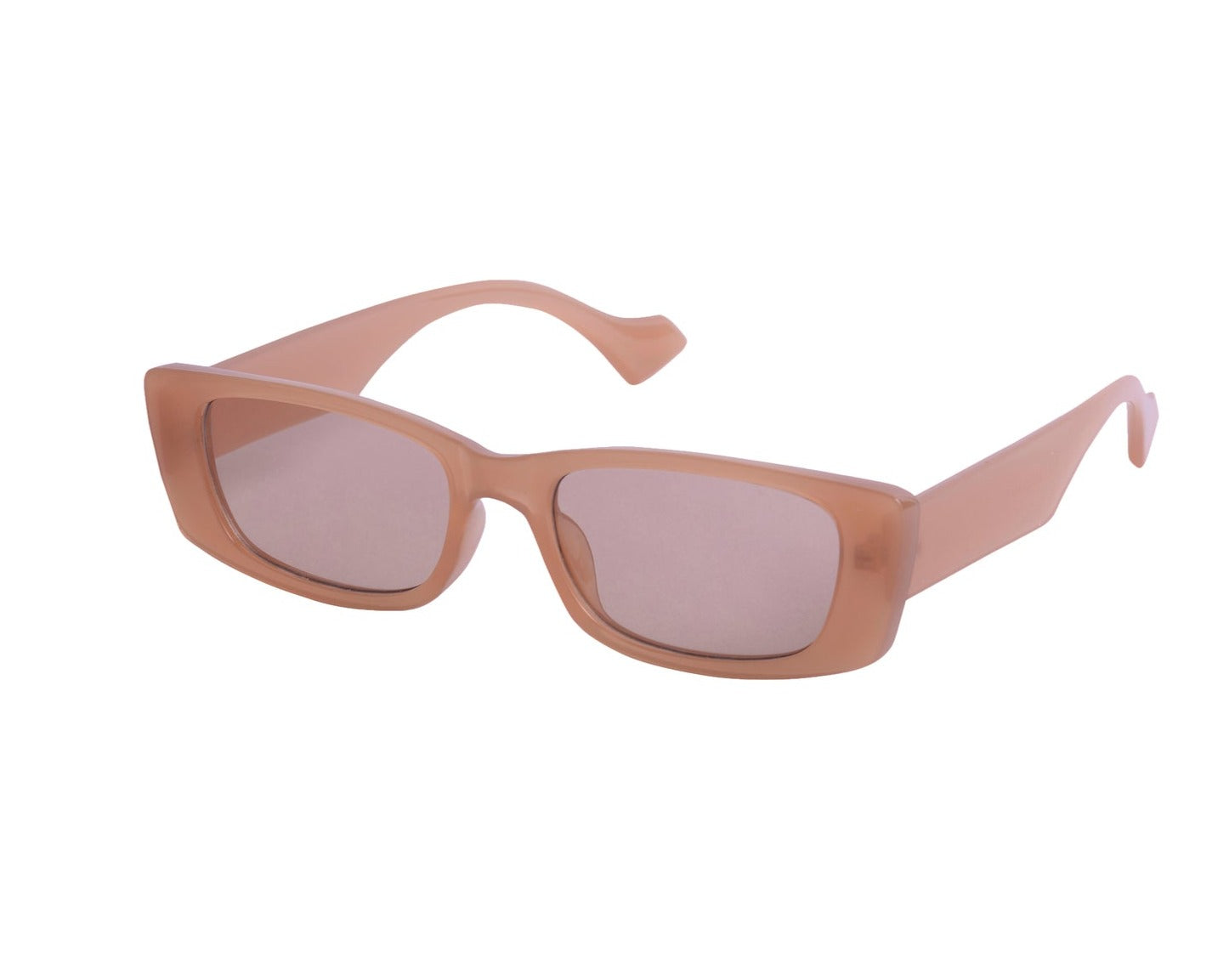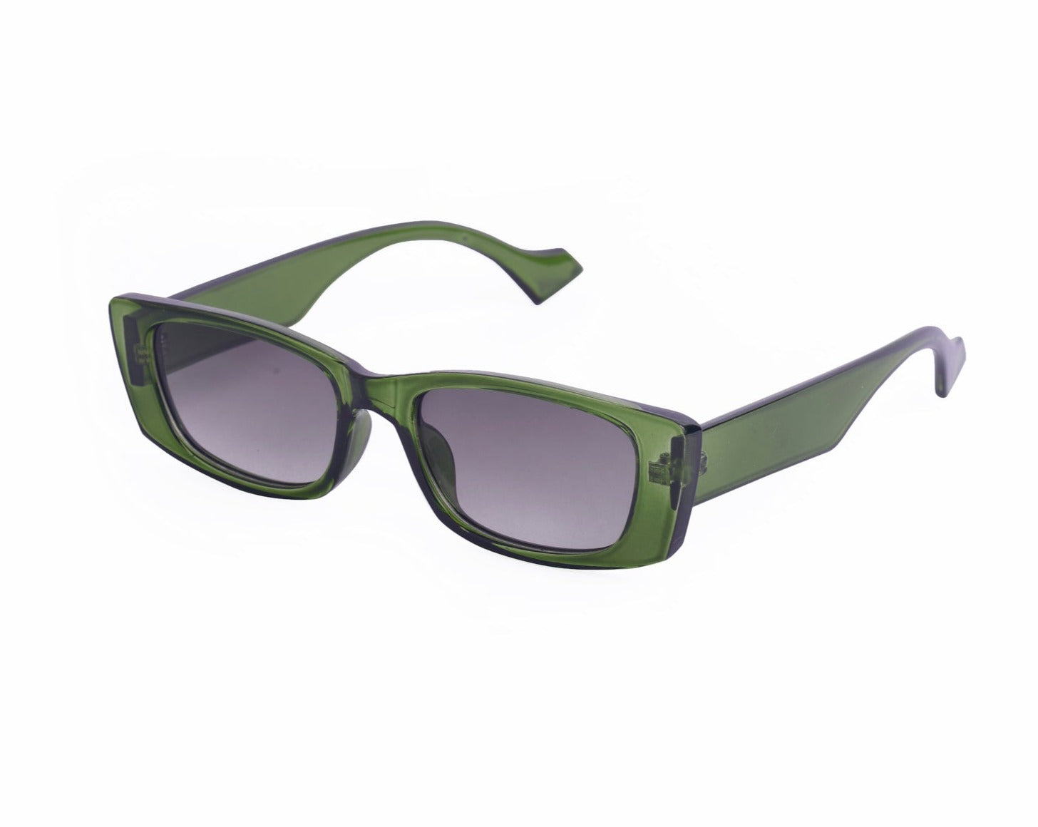 Sunglasses with frames and sidepieces in plastic and tinted, UV-protective lenses.