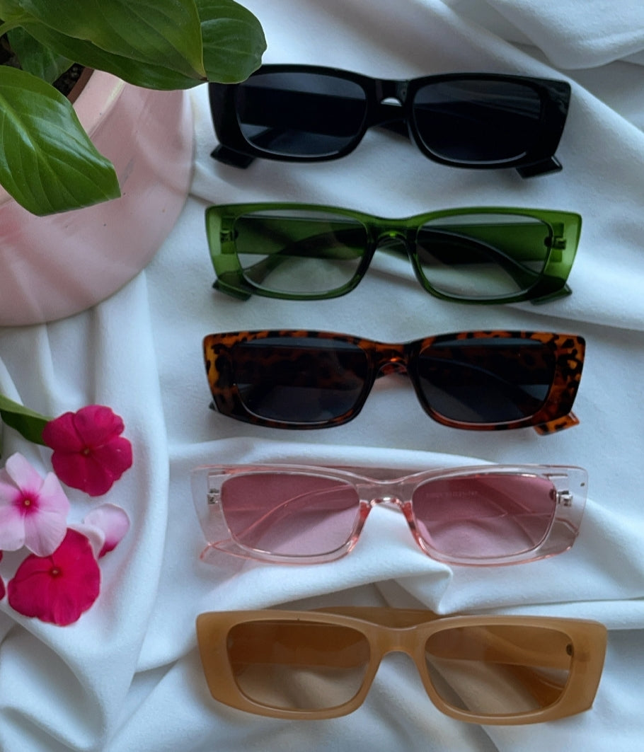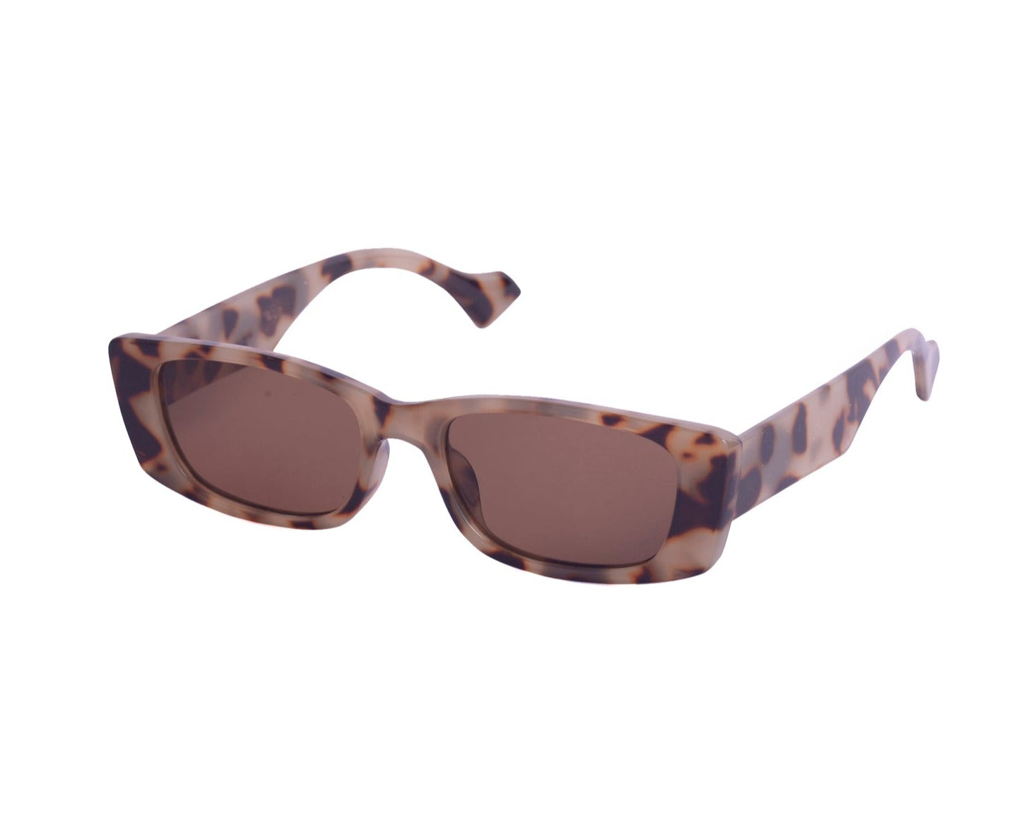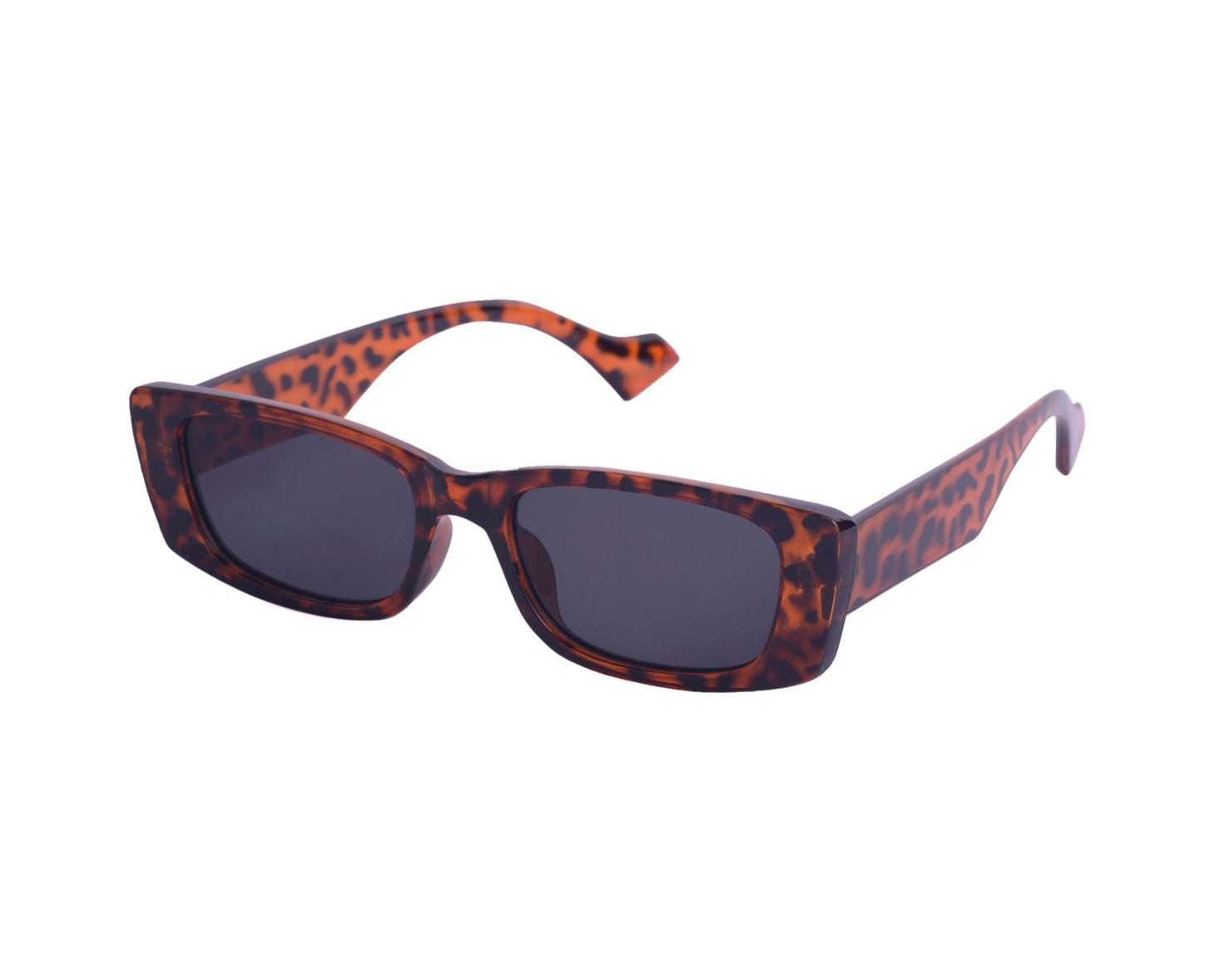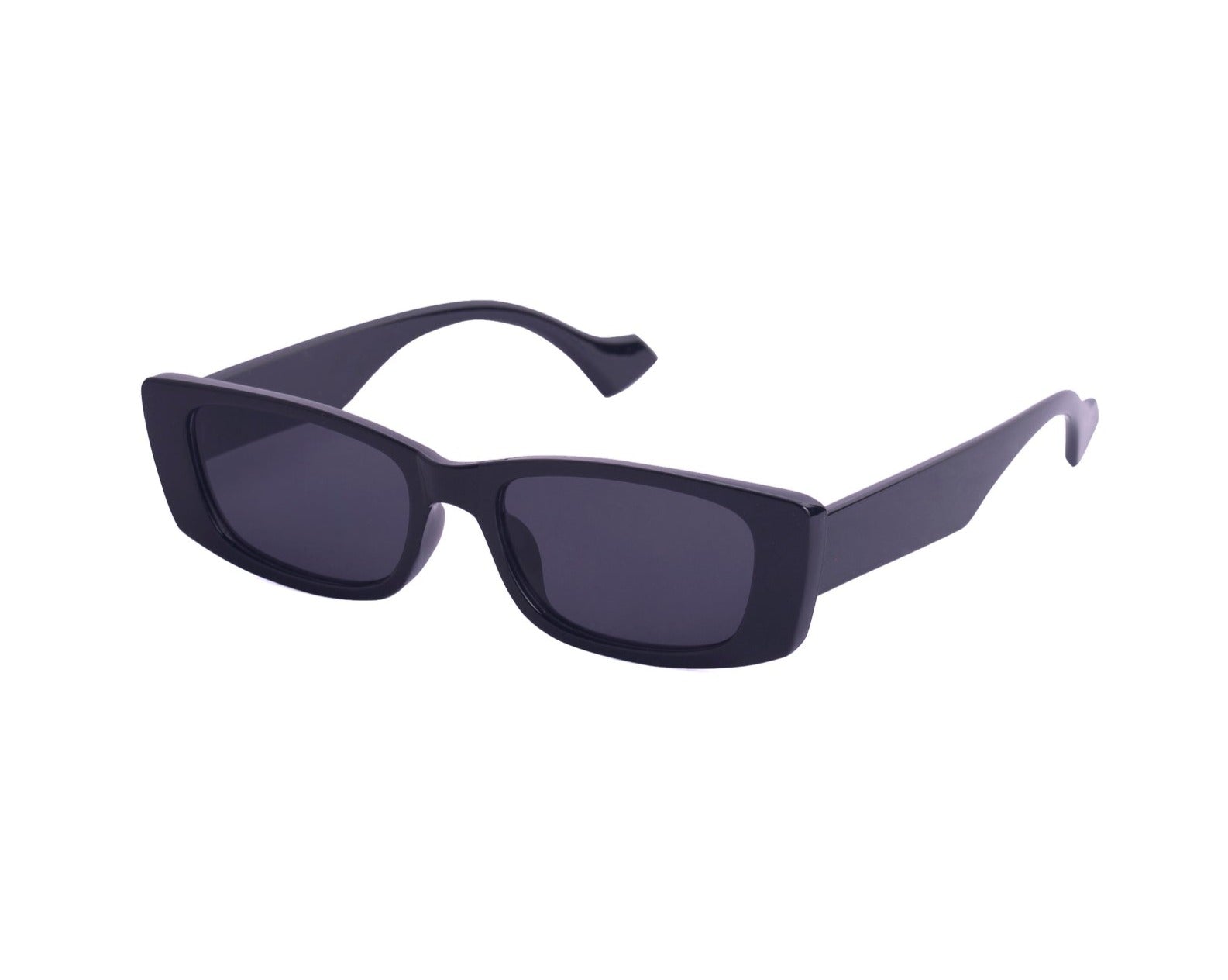 Sunglasses with frames and sidepieces in plastic and tinted, UV-protective lenses.