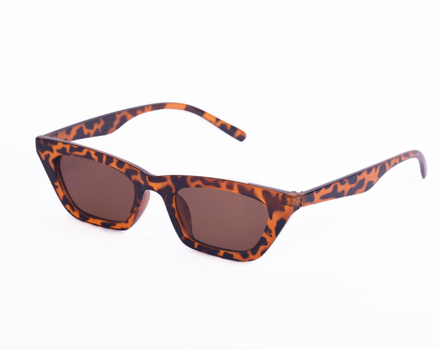 Sunglasses with frames and sidepieces in plastic and tinted, UV-protective lenses.