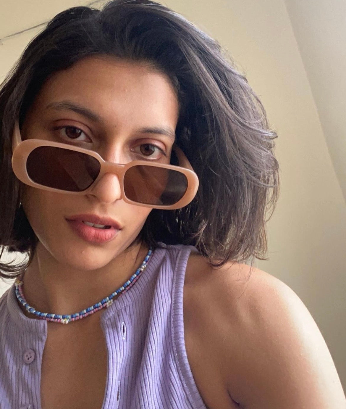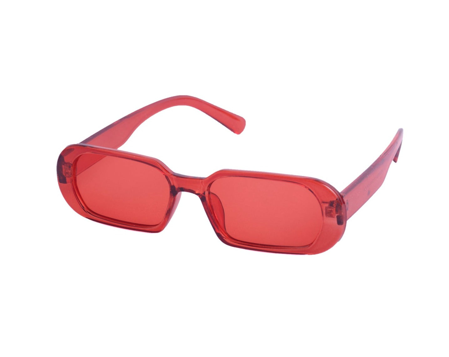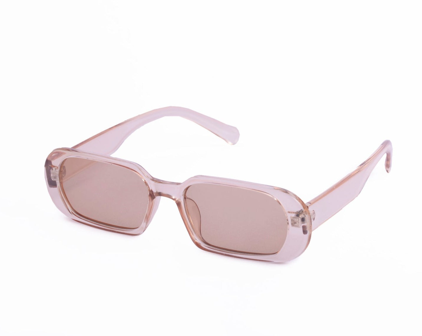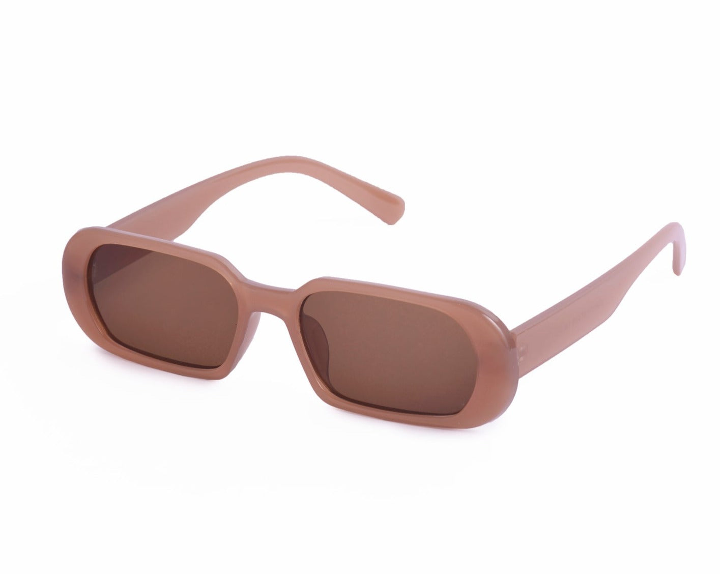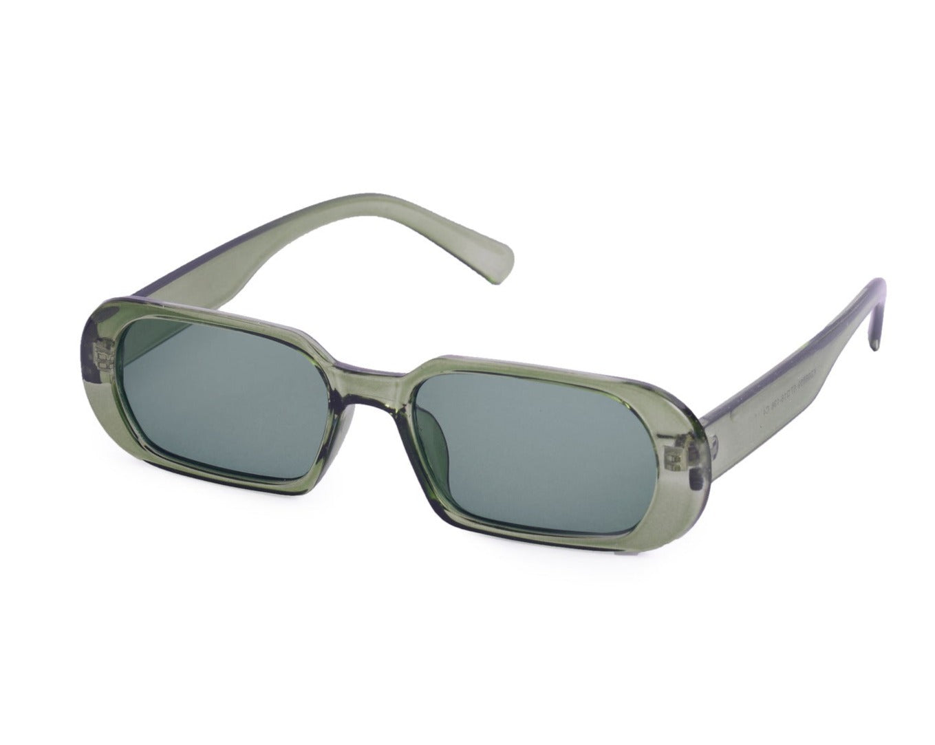 Sunglasses with frames and sidepieces in plastic and tinted, UV-protective lenses.