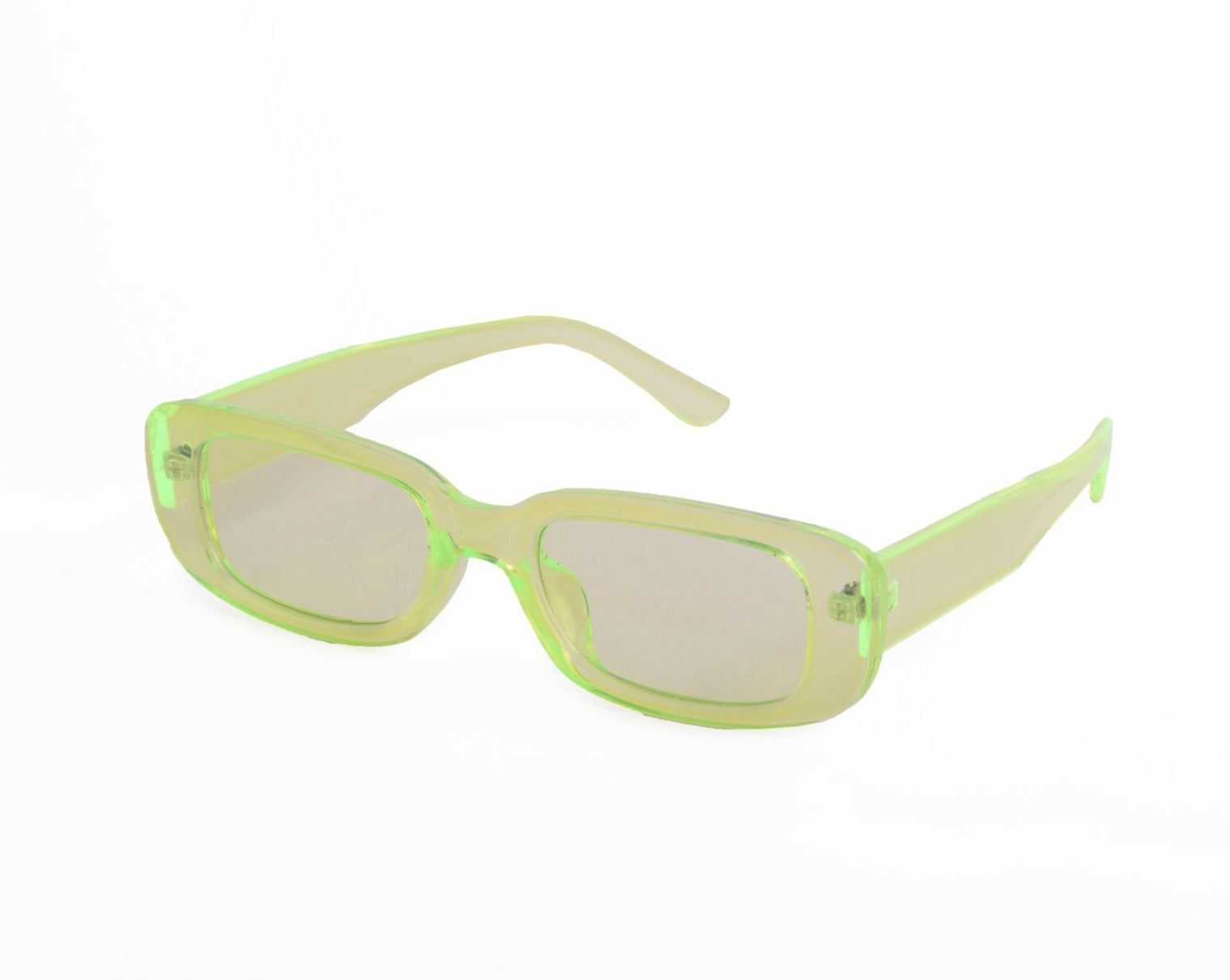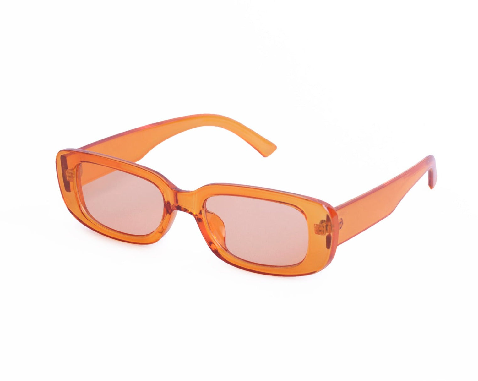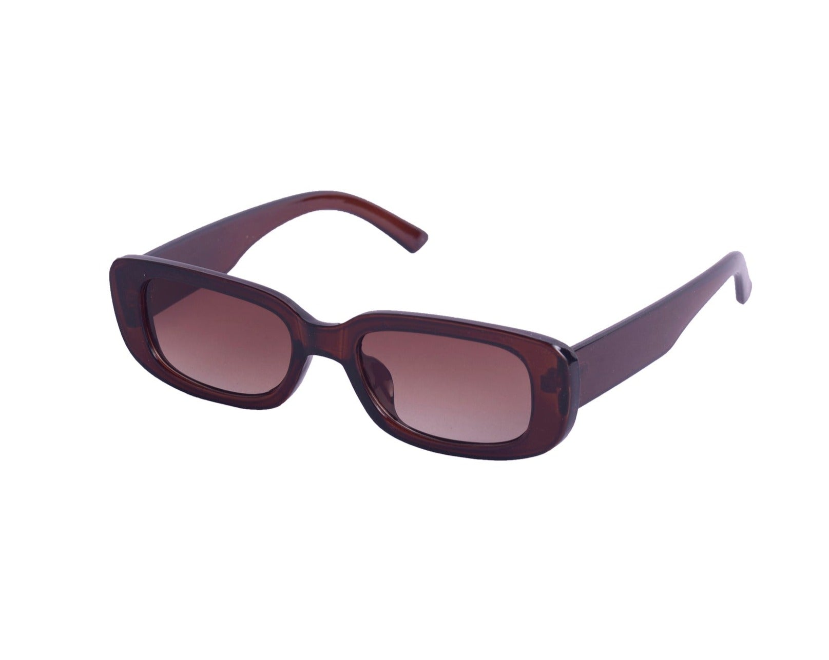 Sunglasses with frames and sidepieces in plastic and tinted, UV-protective lenses.