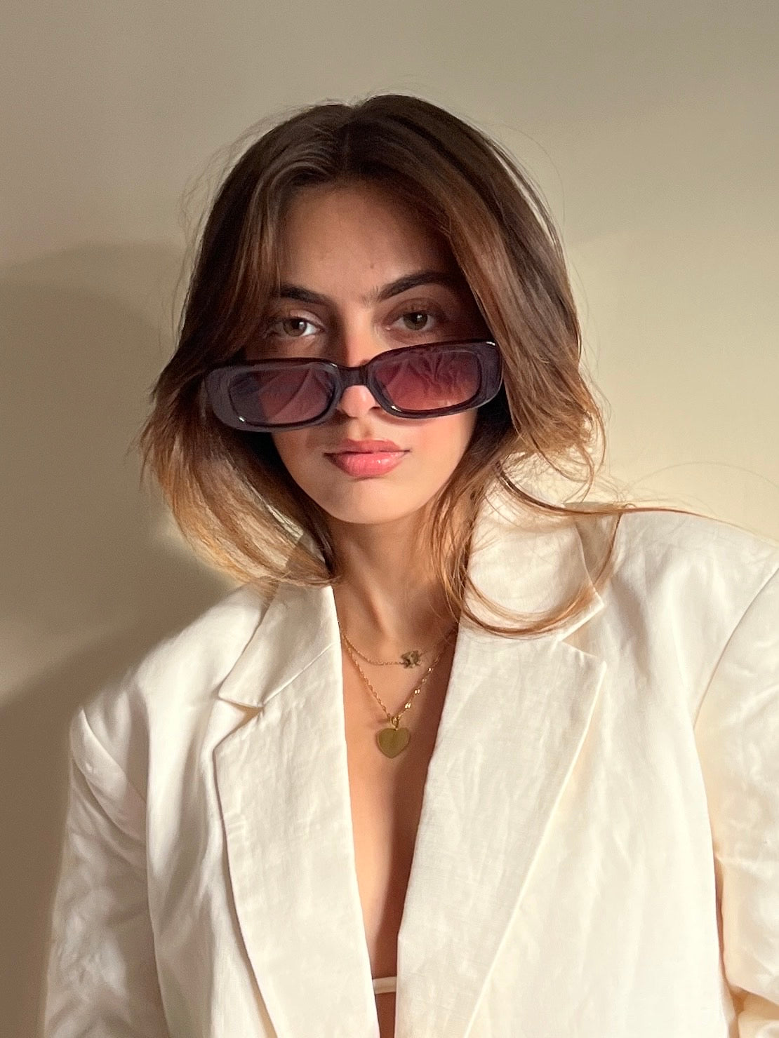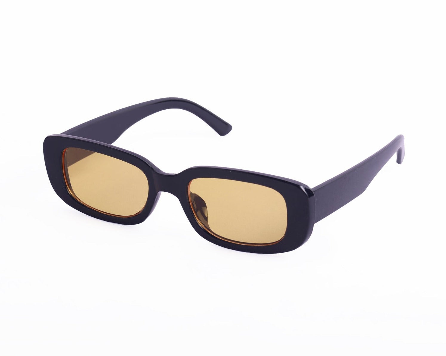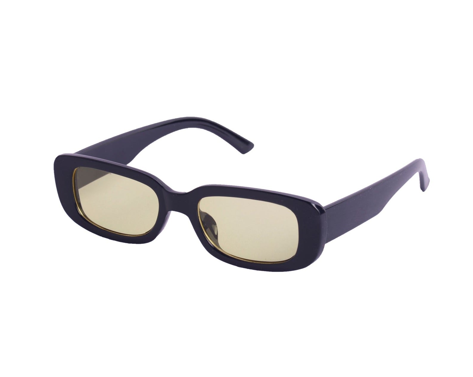 Sunglasses with frames and sidepieces in plastic and tinted, UV-protective lenses.