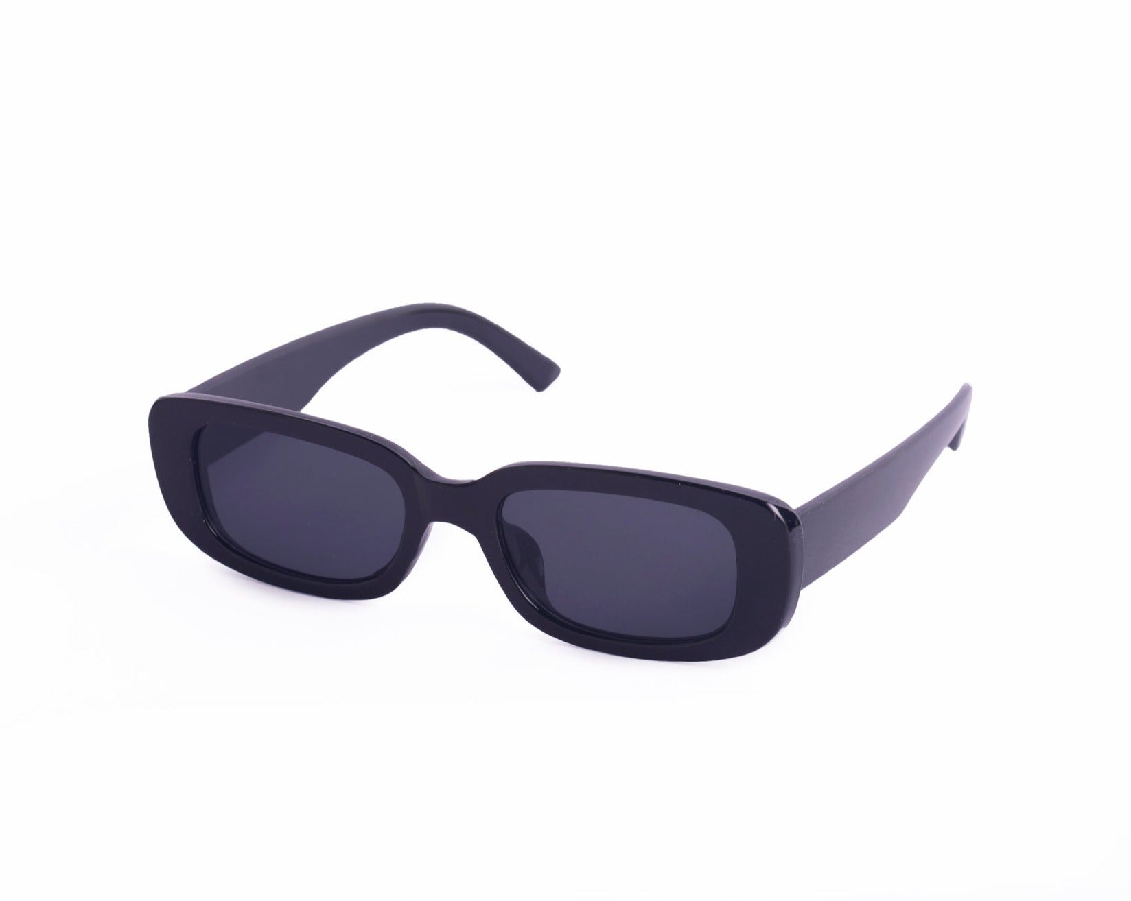 Sunglasses with frames and sidepieces in plastic and tinted, UV-protective lenses.