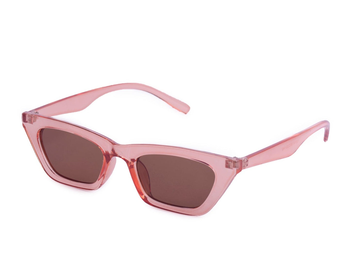 Sunglasses with frames and sidepieces in plastic and tinted, UV-protective lenses.
