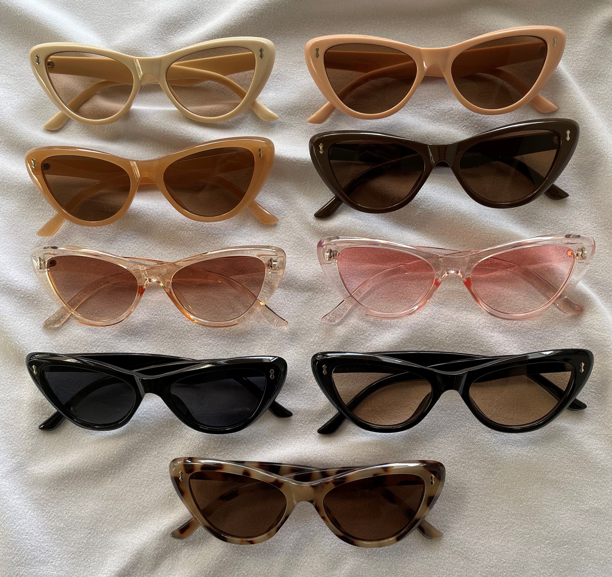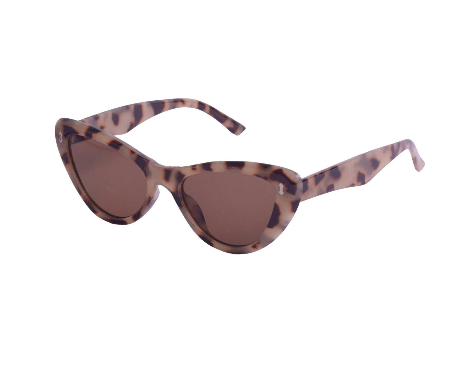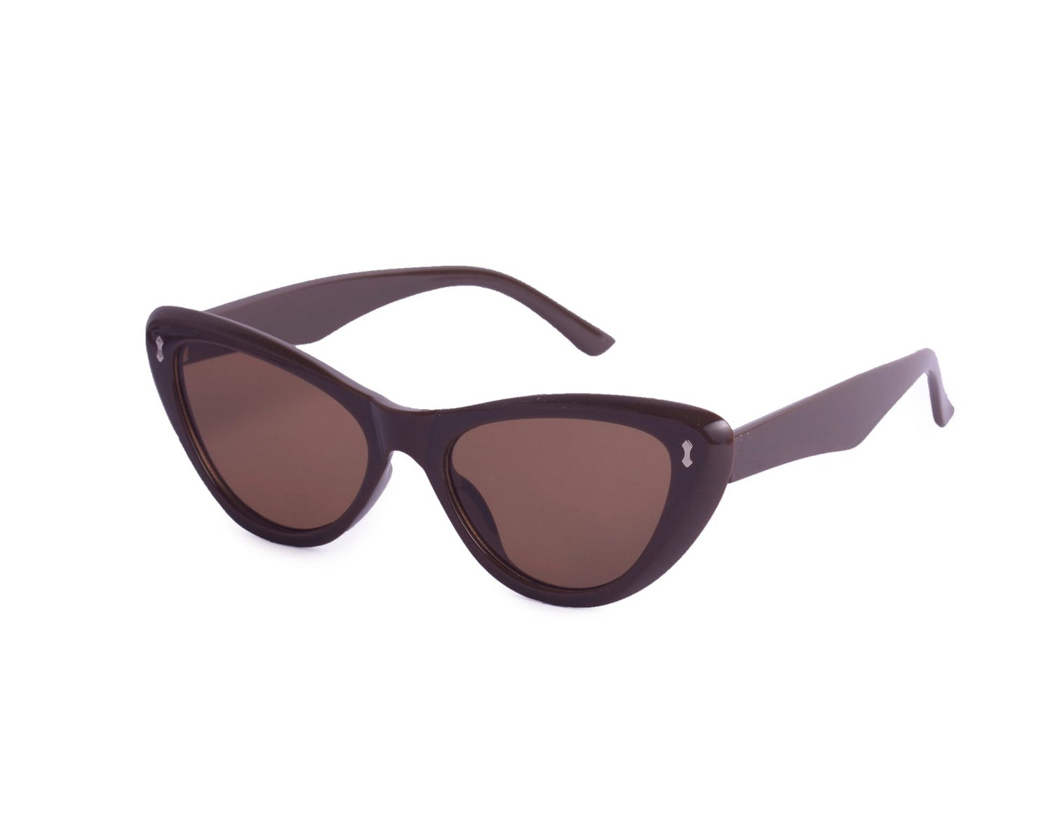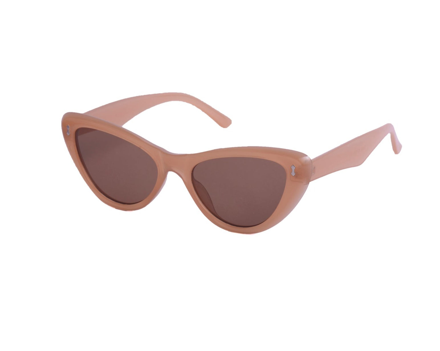 Sunglasses with frames and sidepieces in plastic and tinted, UV-protective lenses.