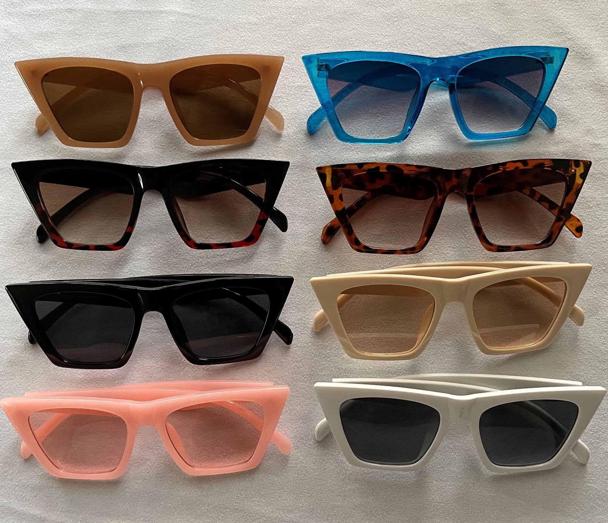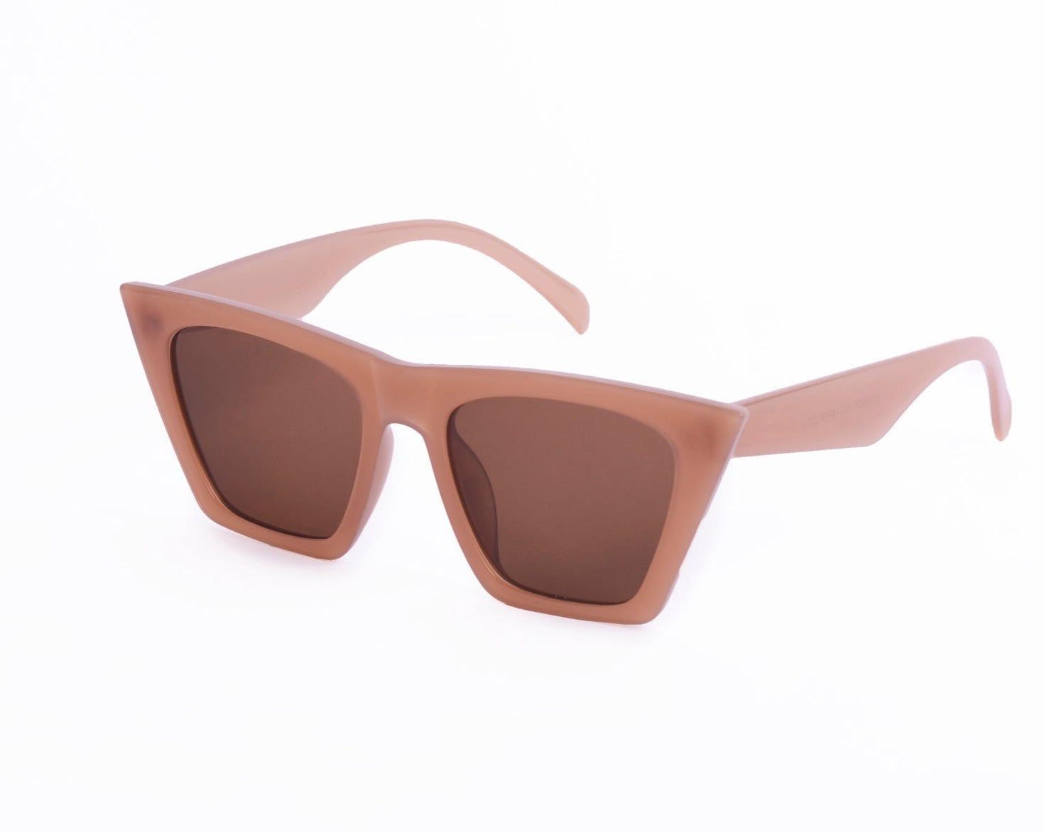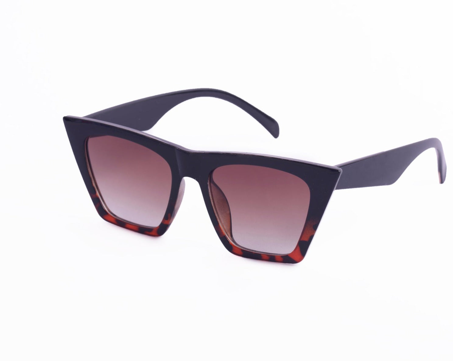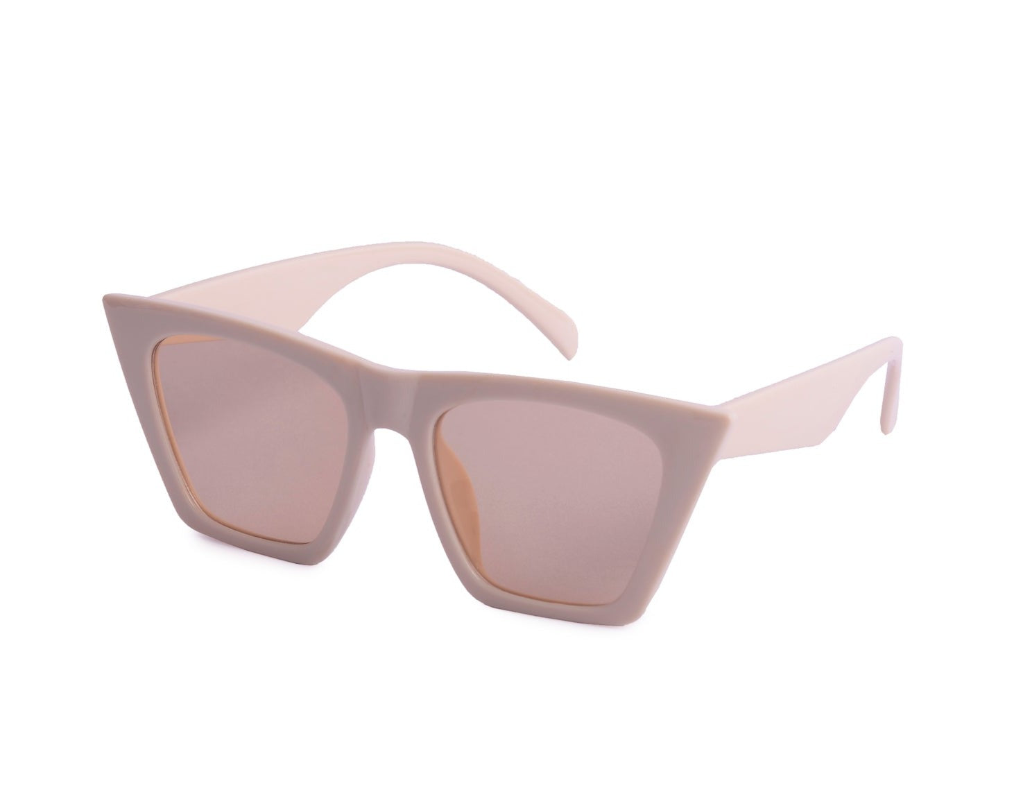 Sunglasses with frames and sidepieces in plastic and tinted, UV-protective lenses.